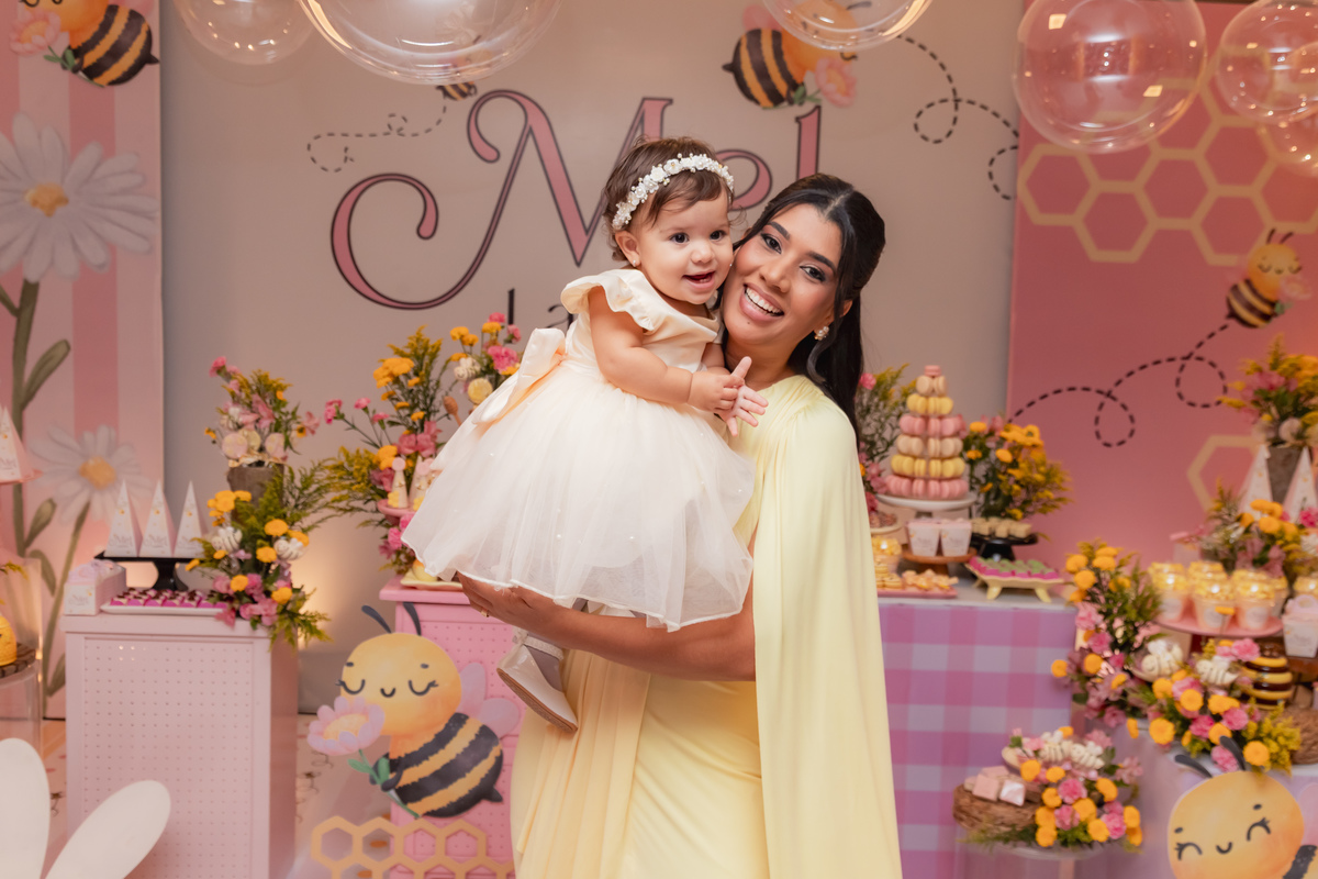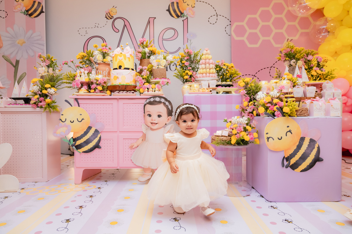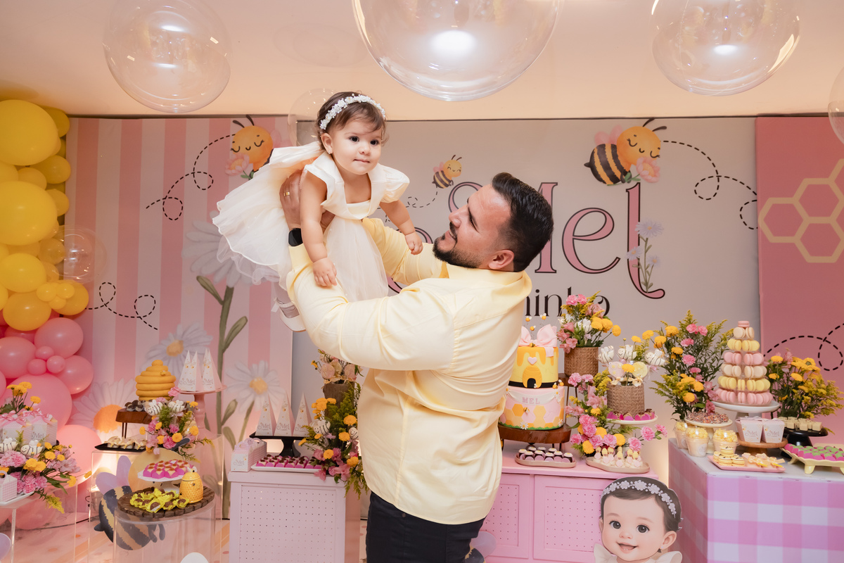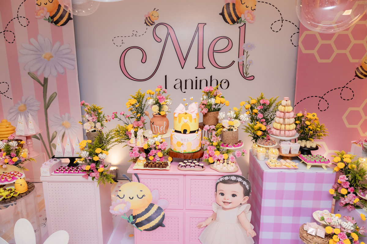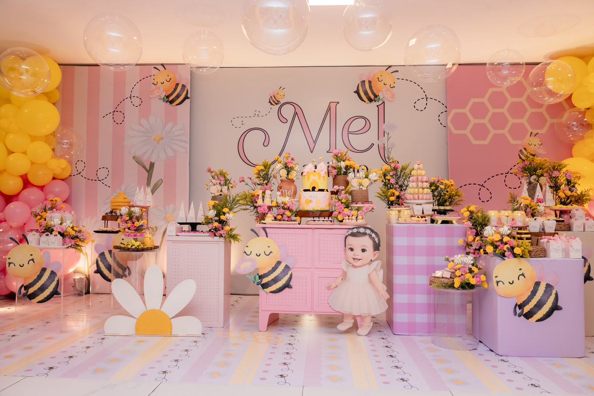 O apelido já diz tudo, e a mamãe simplesmente arrasou na escolha do tema: Abelhinha, com muito mel, do jeitinho que esse primeiro aninho merece.