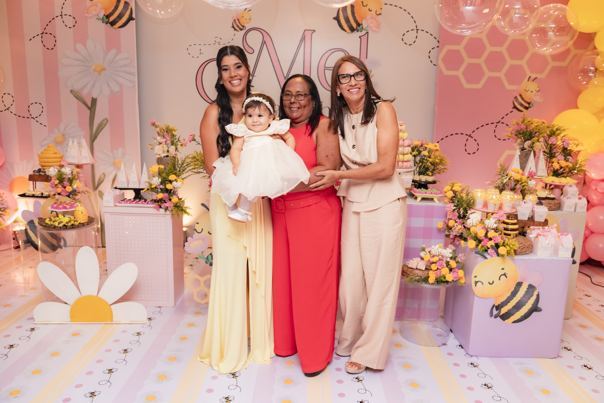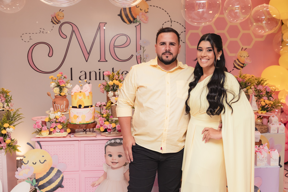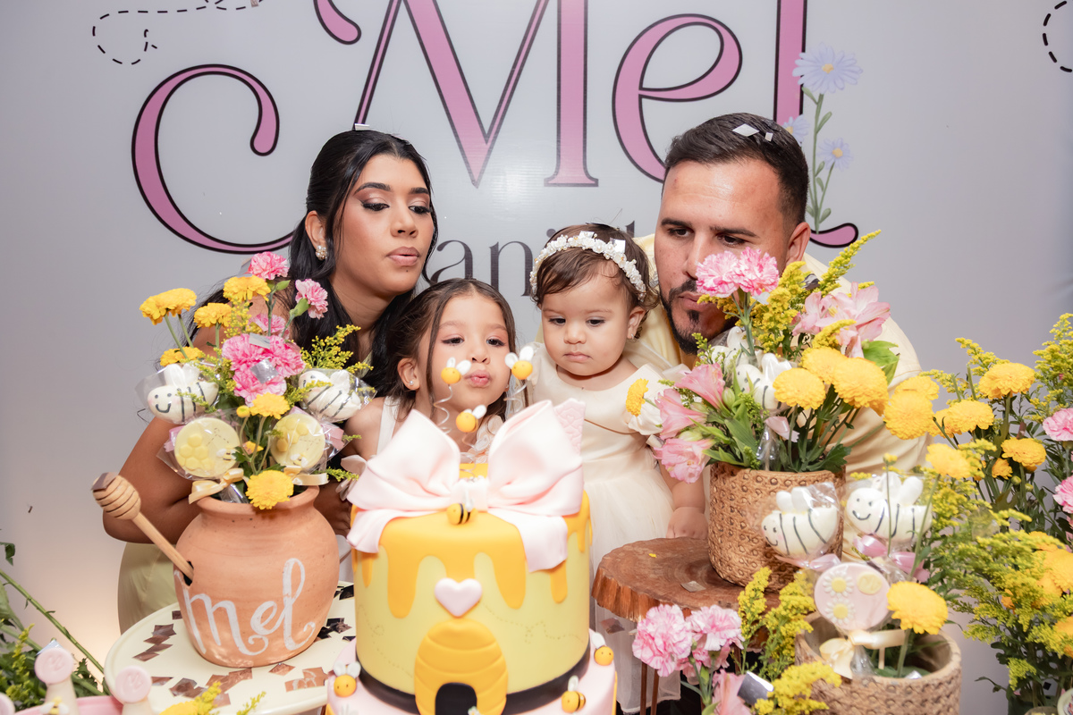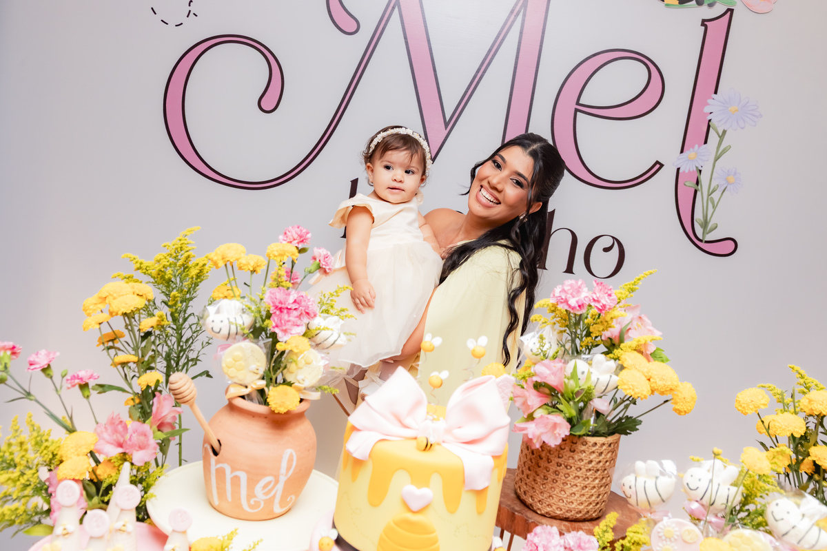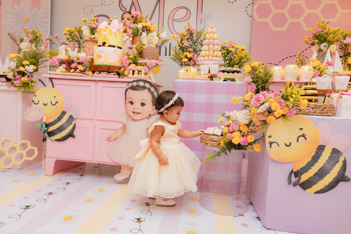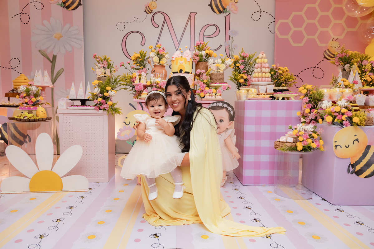 O apelido já diz tudo, e a mamãe simplesmente arrasou na escolha do tema: Abelhinha, com muito mel, do jeitinho que esse primeiro aninho merece.