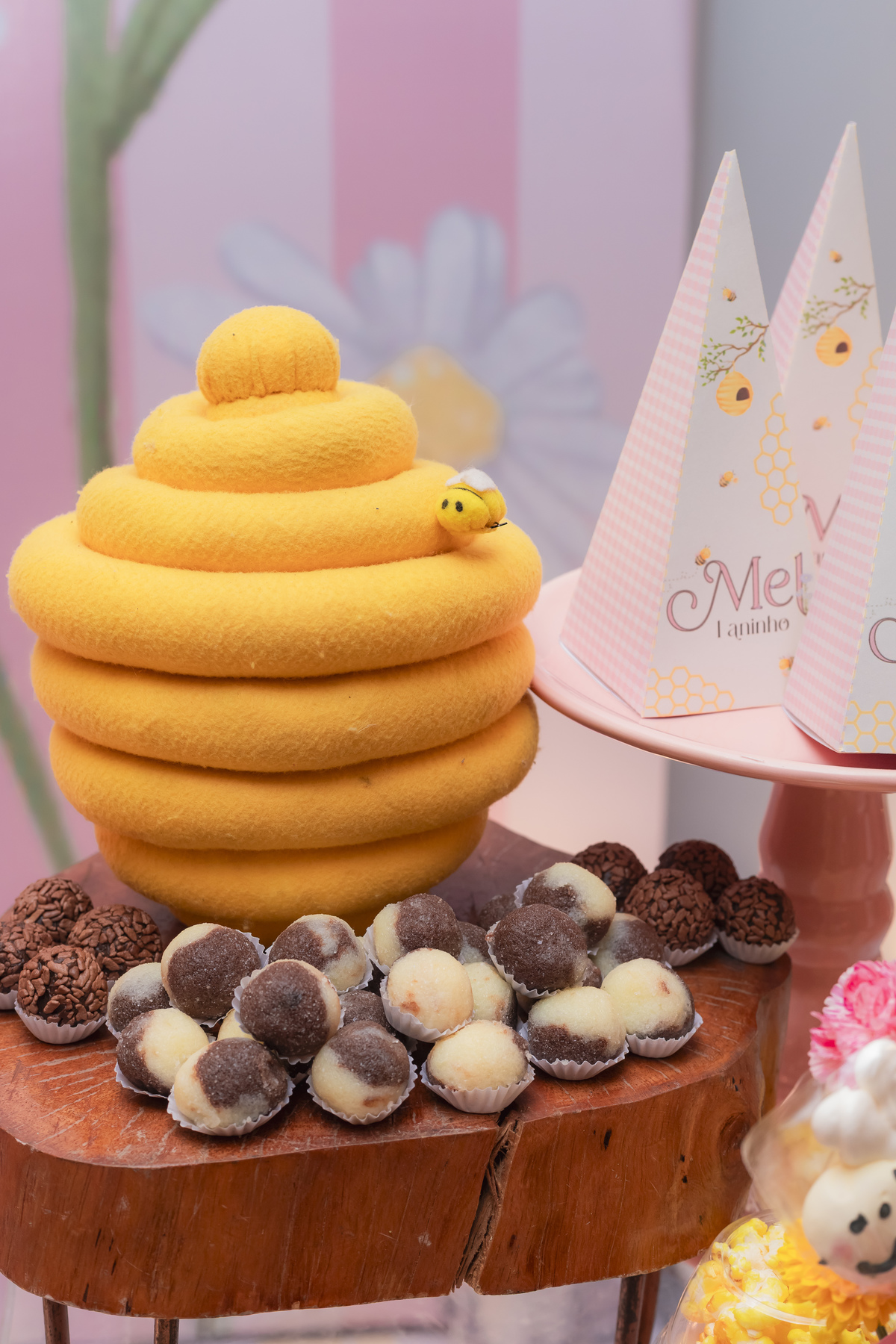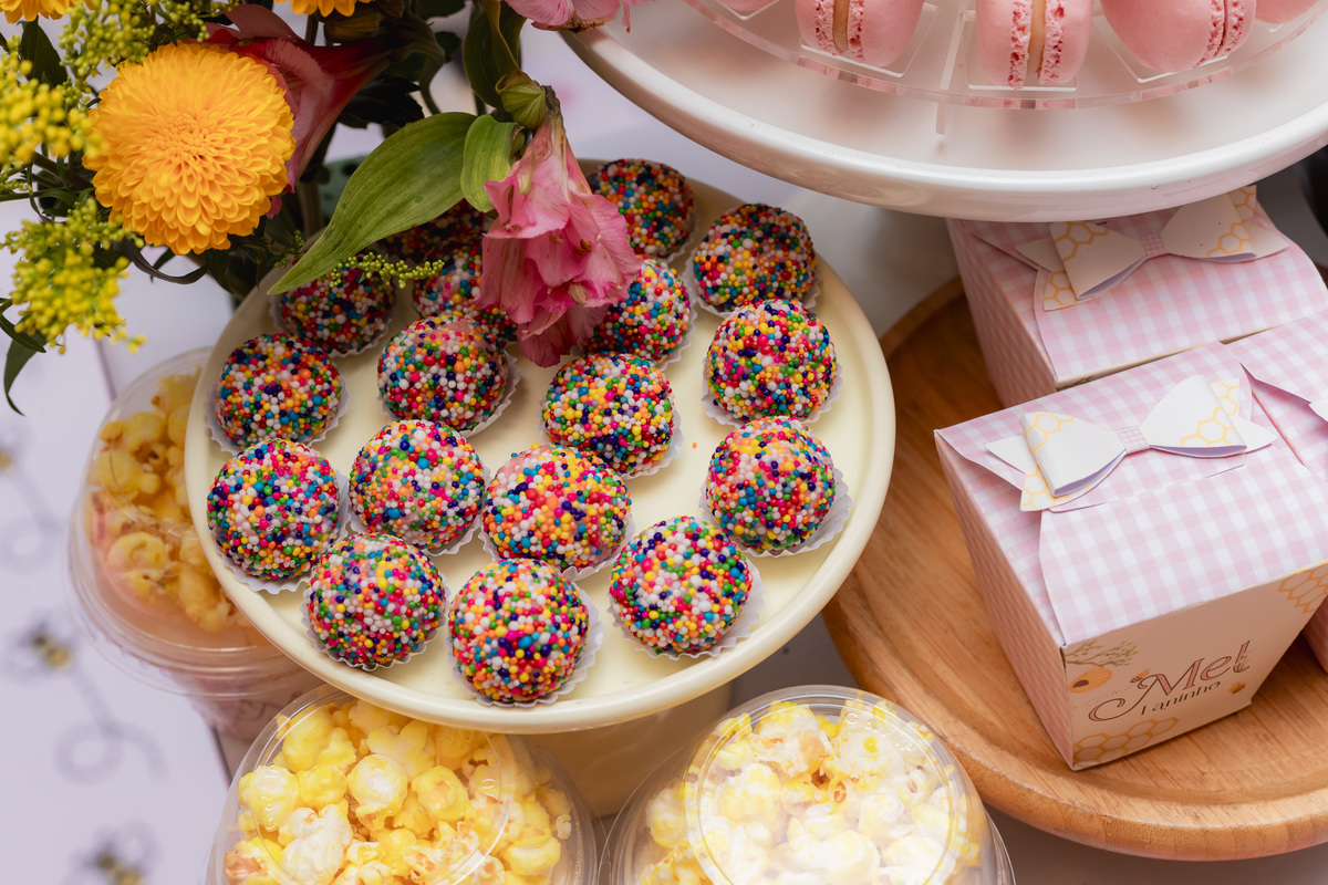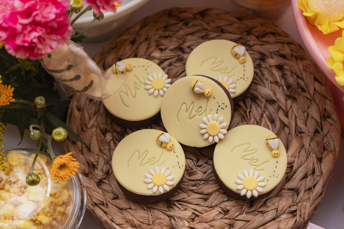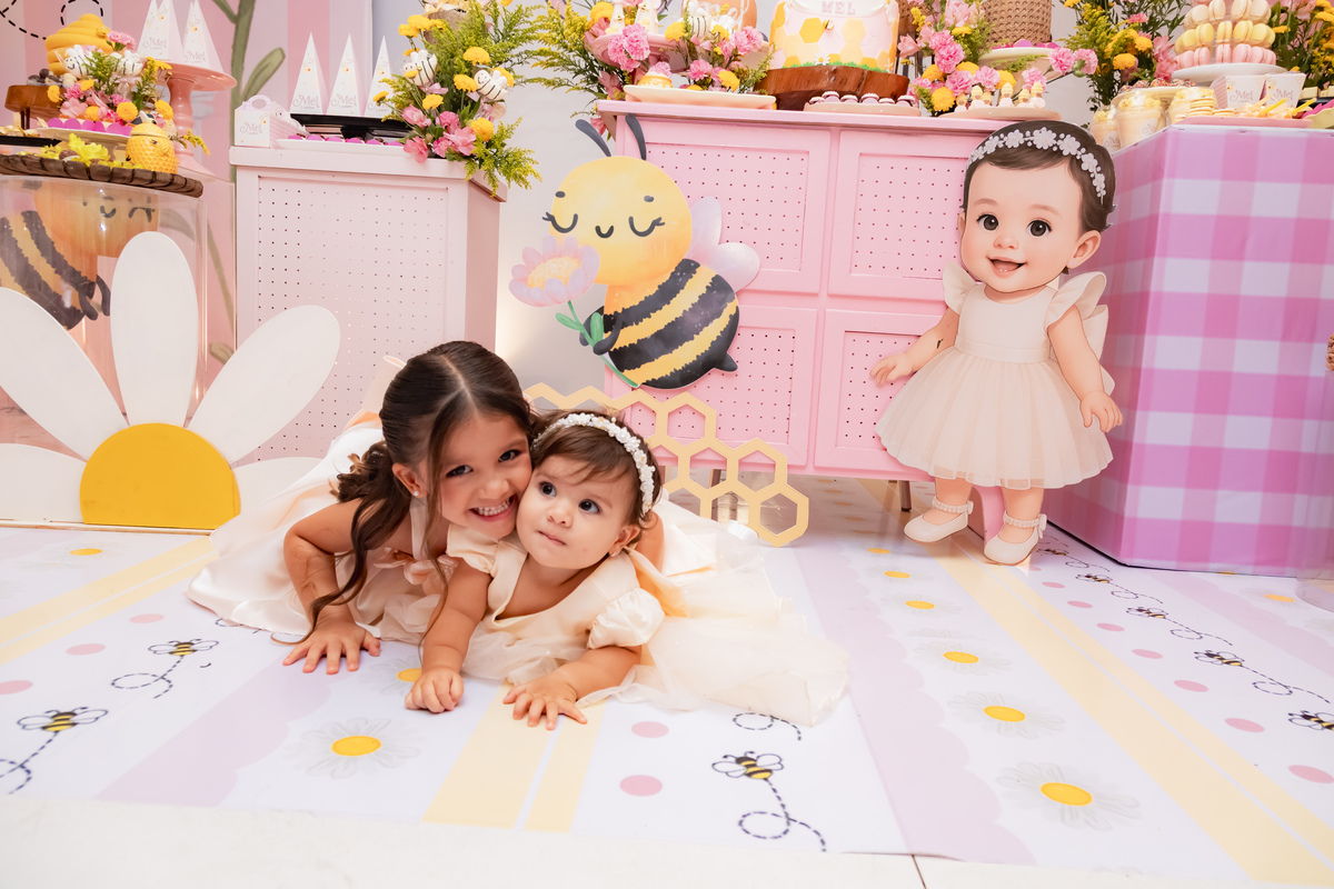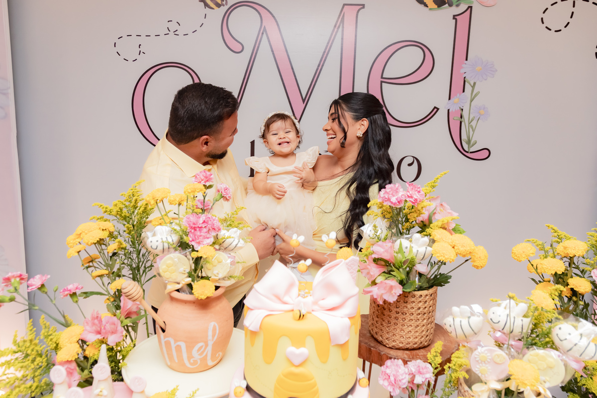 O apelido já diz tudo, e a mamãe simplesmente arrasou na escolha do tema: Abelhinha, com muito mel, do jeitinho que esse primeiro aninho merece.